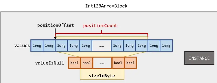 由于java中的整型长是64字节,即long类型,那么如何表示更长字节的整型呢?trino使用Int96ArrayBlock和Int128ArrayBlock来表示。