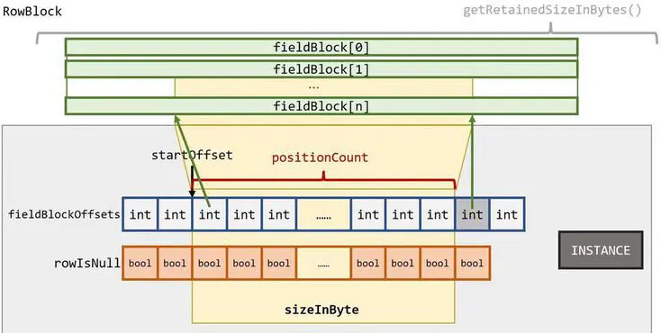 RowBlock 将多个具有相同大小(即positionCount相同)的Block对象组合在一起。