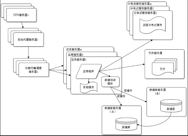 大型网站都是从小型网站发展而来。小型网站最开始没有什么人访问,只要一台服务器就可以。应用程序,数据库,文件等所有资源都在一台服务器上。