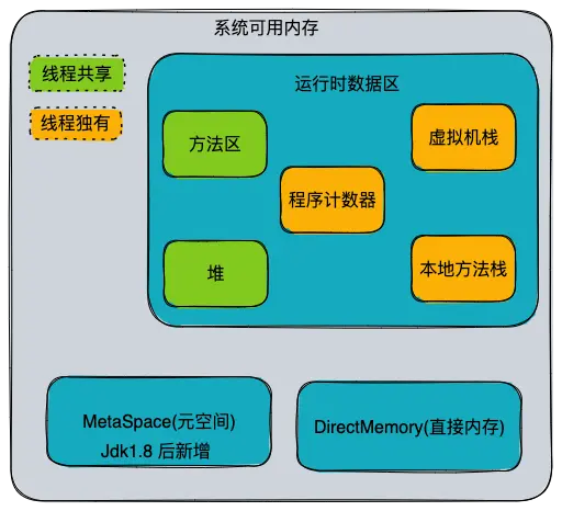 方法区(Method Area)和Java堆一样,是各个线程共享的内存区域。用于存储已被虚拟机加载的类信息、常量、静态变量、即时编译器编译后的代码等数据。