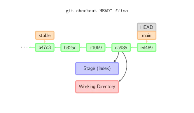 | mixed(默认) | 撤销暂存区状态,不影响工作区,需手动git checkout | 修改 | 修改 | 不修改 |