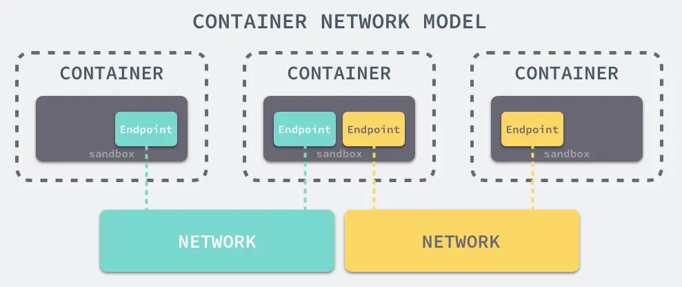整个网络部分的功能都是通过 Docker 拆分出来的 libnetwork 实现的,它提供了一个连接不同容器的实现,同时也能够为应用给出一个能够提供一致的编程接口和网络层抽象的容器网络模型.libnetwork 中最重要的概念,容器网络模型由以下的几个主要组件组成,分别是 Sandbox、Endpoint 和 Network: