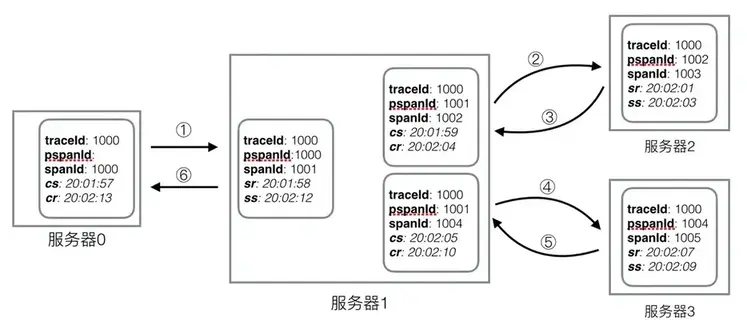 - 收到请求时,生成新的span,上游spanId 变成 pspanId。
