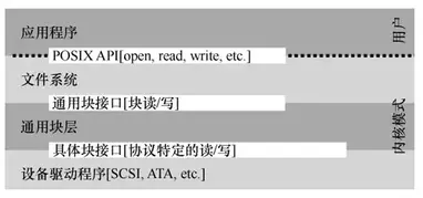 文件系统(当然也包括在其之上的应用程序)完全不清楚它使用的是什么类型的磁盘。它只需要简单地向通用块设备层发送读写请求即可,块设备层会将这些请求路由给对应的设备驱动,然后设备驱动来完成真正的底层操作。