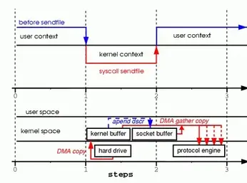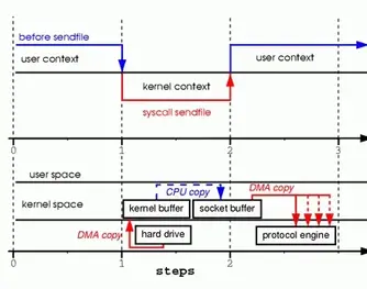 首先,它可以替代前面的 read() 和 write() 这两个系统调用,这样就可以减少一次系统调用,也就减少了 2 次上下文切换的开销。